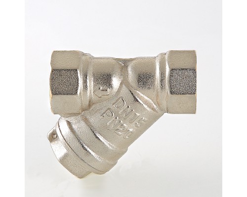 Фильтр механической очистки косого типа. Может устанавливаться в горизонтальном и вертикальном (движение потока – сверху–вниз) положении. Корпус и пробка фильтров изготовлены горячим прессованием из латуни марки CW617N (европейский стандарт EN 12165) и никелированы. Между ними корпусом и пробкой, имеющей отверстие для пломбировки, предусмотрена тефлоновая уплотнительная прокладка. Размер ячеек сетки фильтрующего элемента – 500, 800 и 1000 мкм, соответственно для моделей с Ду 1/2–1; 1 1/4–1 1/2 и 2". Максимальное рабочее давление – 20 или 16 бар. Максимальная рабочая температура фильтруемой среды – 150 °C. Резьба присоединения – внутренняя.