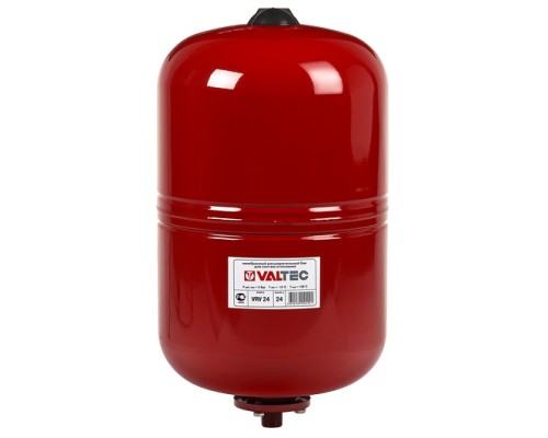 80–300 л. Бак предназначен для компенсации температурного расширения теплоносителя, сглаживания колебаний давления и гидравлических ударов в системах отопления с температурой теплоносителя до 100 °С и рабочим давлением до 6 бар. В качестве теплоносителя может использоваться вода и антифриз на основе гликолей. Бак оснащен несменной мембраной из стиролбутадиенового каучука (SBR). Мембрана завальцована в фальцевое соединение частей корпуса, разделяя его на жидкостную (верх) и газовую (низ) полости. Жидкостная часть имеет присоединительный патрубок диаметром ¾", расположенный сверху бака, газовая – штуцер для регулирования давления. Заводское давление воздушной подушки (преднастройка) – 1,5 бара. Корпус мембранного расширительного бака выполнен из углеродистой стали и окрашен термостойкой эпоксидной эмалью красного цвета (RAL 3000). Бак предназначен для вертикальной установки и оборудован подставкой.