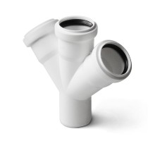 Двухплоскостная крестовина обеспечивает подключение двух стоков к угловому стояку в двух разных плоскостях. Неравнопроходные крестовины делятся на левые, у которых меньший патрубок подсоединяется слева от большего и правые, в которых подключение меньшего патрубка осуществлено справа. При определении ориентации крестовины больший патрубок должен "смотреть" раструбом вперед.
