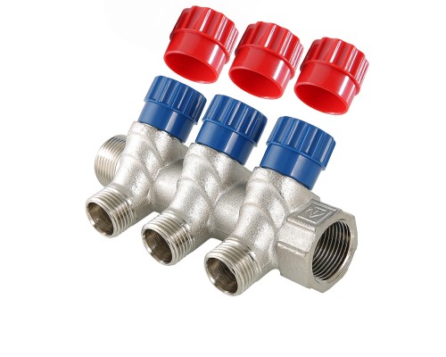 Никелированный коллектор для воды и других сред, неагрессивных к материалам изделия. Изготовлен из качественной сантехнической латуни марки CW617N (европейский стандарт ЕN 12165). Имеет 2 выхода диаметром ½" с наружной резьбой. На каждом выходе предусмотрен вентиль для регулирования расхода рабочей среды с минимальным ресурсом 8 тыс. циклов. Диаметр коллектора – 1", резьба – внутренняя/наружная. Ремонтопригодный. Рабочая температура – до 110 °С, давление – до 10 бар. Применение коллектора позволяет отказаться от дополнительной запорной, регулирующей арматуры и уплотнений, облегчает проектирование, монтаж и наладку оборудования. В водоснабжении коллектор обеспечивает равное давление для потребителей, исключая их влияние друг на друга. Коллектор отопления гарантирует поступление требуемого количества тепла к отопительным приборам и контурам теплого пола.