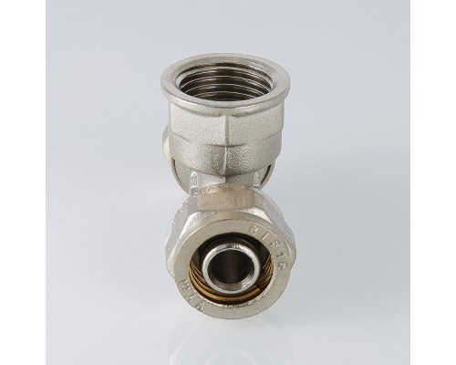 (VTm.332.N) Фитинг обжимной – тройник с переходом на внутреннюю резьбу для металлополимерных (металлопластиковых) труб. Резьба фитинга – внутренняя трубная по ГОСТу 6357.