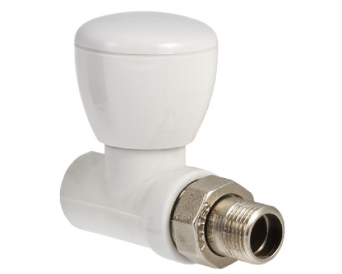Прямой клапан с полипропиленовым корпусом. Обеспечивает удобное подключение отопительного прибора к трубной разводке из полипропилена, грубое ручное регулирование расхода теплоносителя через него, исполнение функции запорной арматуры. Подсоединение к радиаторному клапану полипропиленовой трубы (диаметр – 20 мм) производится раструбной сваркой, радиатора – с помощью закладной детали и полусгона из никелированной латуни (резьба – внешняя, ½”).