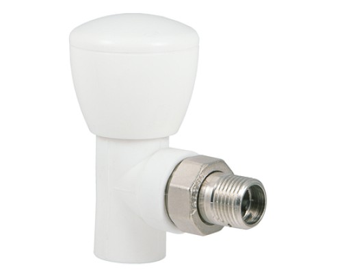 Клапан с полипропиленовым корпусом, угловой. Предназначен для ручной регулировки количества поступающего в отопительный прибор теплоносителя. Клапан позволяет полностью перекрывать поток. Подключение клапана к отопительному прибору производится с помощью закладной детали и полусгона, выполненных из латуни с никелевым покрытием. Монтаж полипропиленовой трубы производится раструбной сваркой. Кроме отопления полипропиленовый клапан VTp.718.V можно использовать в водоснабжении, включая питьевое, и технологических установках.
