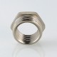 Футорка – фитинг, обеспечивающий соединение труб разного типоразмера, подключение трубопровода к элементу системы с большим диаметром присоединительного патрубка, ремонт (замену) поврежденной резьбы. Изделие выполнено из латуни марки CW617N, никелировано. Резьба – наружная/внутренняя, по типу – трубная цилиндрическая, совместимая с наружной конической (ГОСТ 6211). Шестигранная головка футорки служит ее вкручиванию гаечным ключом. Максимальное рабочее давление использования соединителя зависит от температуры среды: 250 °С – 2,7/1,7 бар, 200 – 3,0/2,7, 120 – 40/25 (до/более 1”).