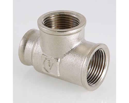 Резьбовой фитинг – тройник переходной с внутренней резьбой. Уникальная комбинация присоединительных патрубков позволяет смонтировать участок трубопровода соответствующей конфигурации без дополнительных соединителей. Фитинг изготовлен методом горячей штамповки из латуни CW617N, никелирован. Резьбовые фитинги VALTEC без резиновых уплотнителей допускается использовать при температуре рабочей среды до 250 °С (максимальное рабочее давление при этом составляет 2,7/1,7 бара – для моделей c условным диаметром до/более 1” соответственно).