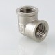Угловой латунный никелированный фитинг. Резьба – внутренняя/внутренняя, цилиндрическая трубная по ГОСТу 6357 (ISO 228, EN 10226), совместимая также с наружной конической резьбой по ГОСТу 6211 (ISO R7).