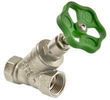 (VT.012) Задвижка клиновая с невыдвижным шпинделем, полнопроходная, ремонтопригодная. По типу присоединения – муфтовая. Выполняет функции запорно-регулирующей арматуры на трубопроводах холодной (в том числе питьевой) и горячей воды, незамерзающего теплоносителя системы отопления, других жидких сред, неагрессивных к материалам задвижки, при температуре от – 10 до +110 °С. Обеспечивает плавное регулирование расхода, перекрытие потока рабочей среды. Детали корпуса и затвор изготовлены из латуни марки CW617N. Другие используемые материалы: латунь CW614N, PTFE (тефлон), EPDM. Рукоятка – стальная, с эпоксидным покрытием. Номинальное давление – 16 бар. Средний полный ресурс задвижки – 8 тыс. циклов.